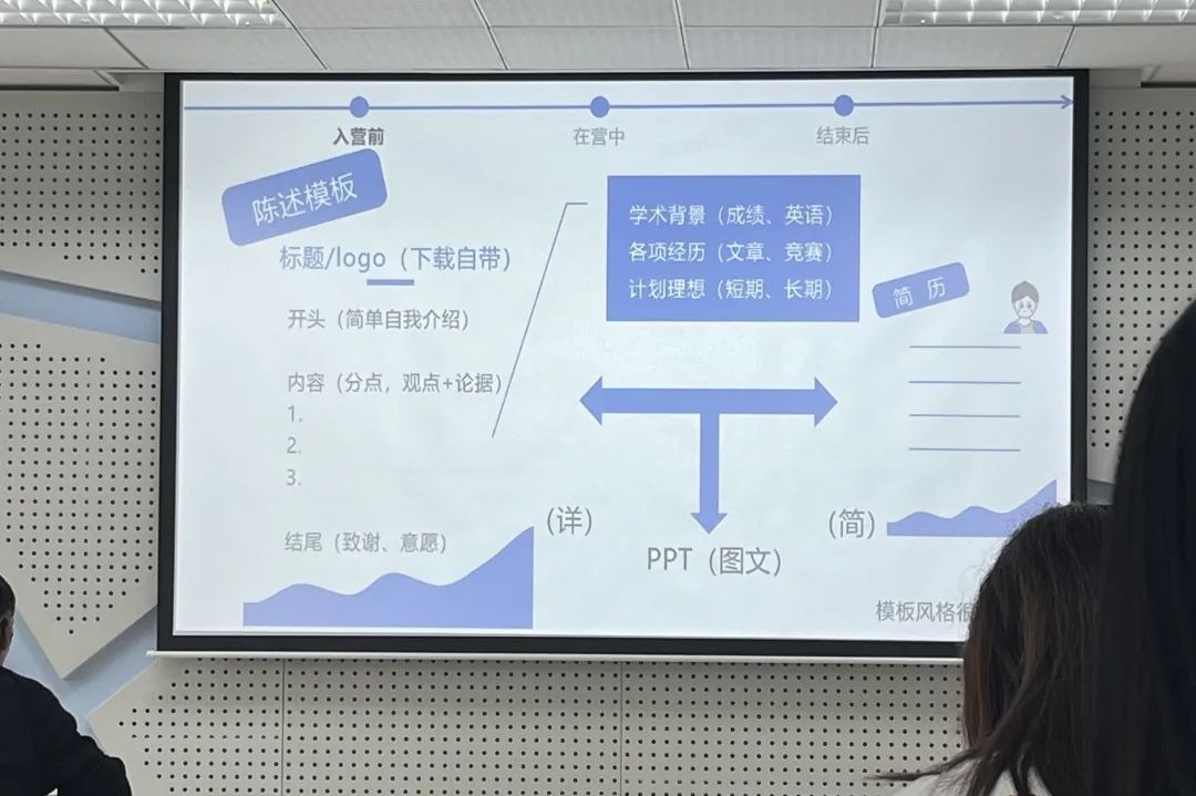 在保研分享会中,章琪敏、兰翔伟、杜丽等八位受邀员工代表就自己的本科学习情况和夏令营预推免情况进行展示,分享了院校选择、夏令营预推免面试的经验。吕彤彤主要分享了面试公司的情况,不同院校的面试内容都大不相同;汪倩羽建议同学们将自己的简历及PPT与实验室师兄师姐交流;颜文慧、李艾蓉、王晓静就自己参加的夏令营公司面试流程进行了详细介绍,强调要了解简历上呈现的所有科研经历。宇杰基于此建议大家要眼光长远,在公司和专业的多方面中找到最优解。