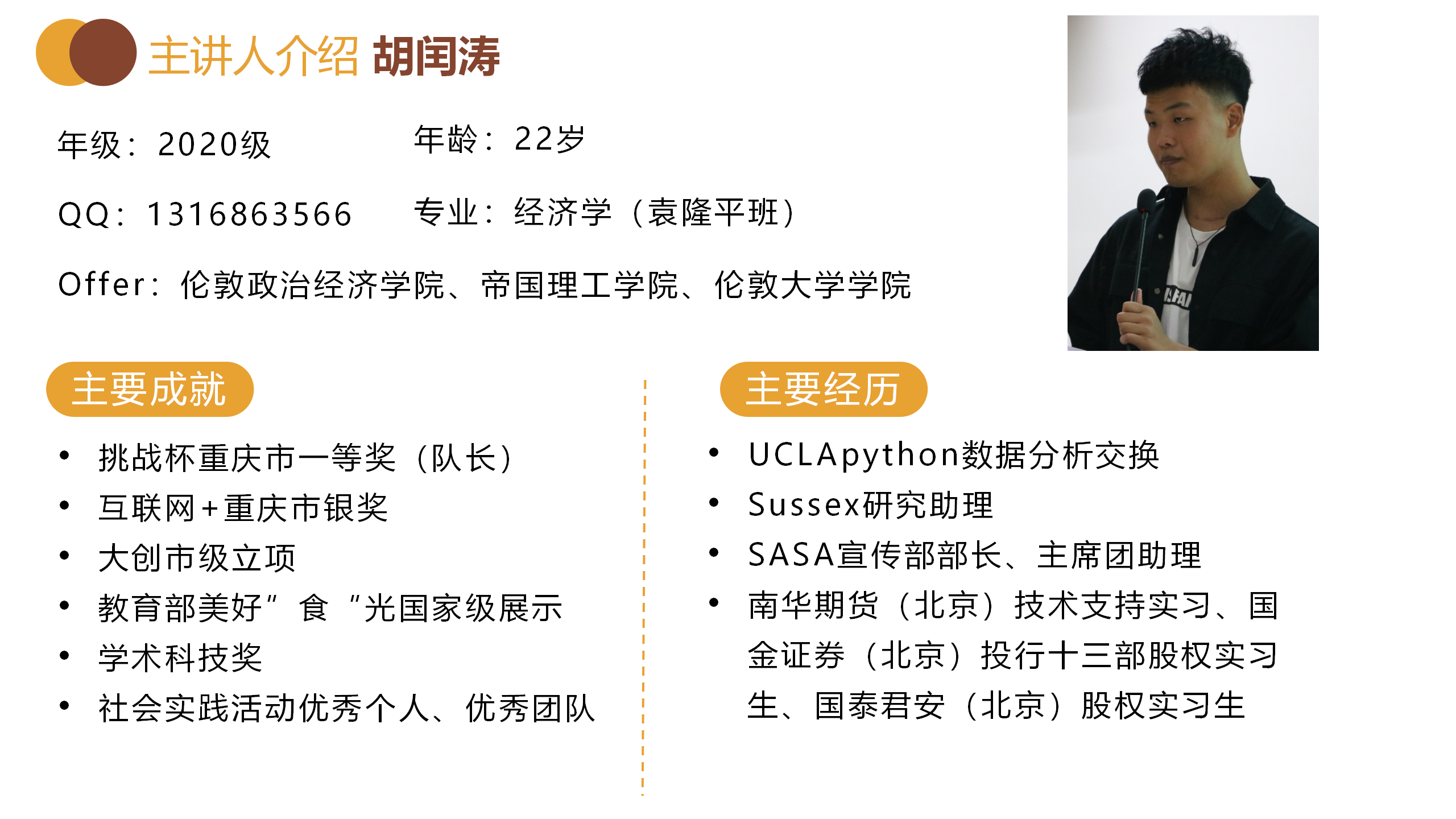 用脚丈量世界,出发永远是最有意义的事情。成功获得多所世界名校offer的胡闰涛围绕留公司校的选择与文书材料的准备与同学们进行了交流,他建议2021级的同学们要注重语言成绩的提升并广泛参与实习实践,以此丰富申请履历。