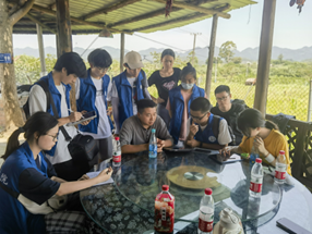 6月28日,同学们分为七个小组,分别围绕“农村人居环境治理”“集体经济”“流量经济”“采摘经济”“艺术乡建”“生态治理”“人才赋能”等课题展开深入调研,通过查询资料、问卷调查、采访交流、材料取样等多种方式,获得第一手数据。