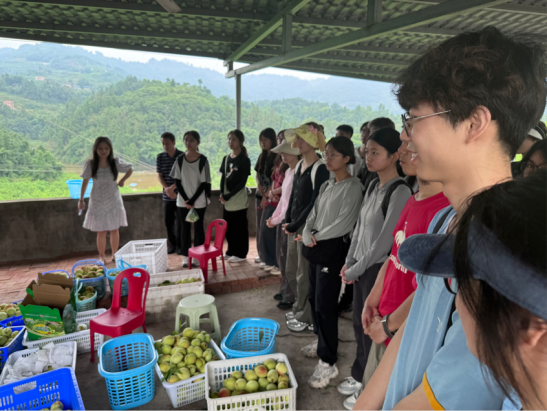 接着,实践团前往润在蔬菜基地、十里花果长廊、定心茶园、巴南香桃基地、云篆山养蜂集团、中坝蔬菜基地与二圣镇梨园等,通过亲身品尝枫糖李、香桃、茶叶、蜂蜜等特色农产品,感受其特色口感与风味,了解并调研了当地农产品产地仓、储运销等产业链。
