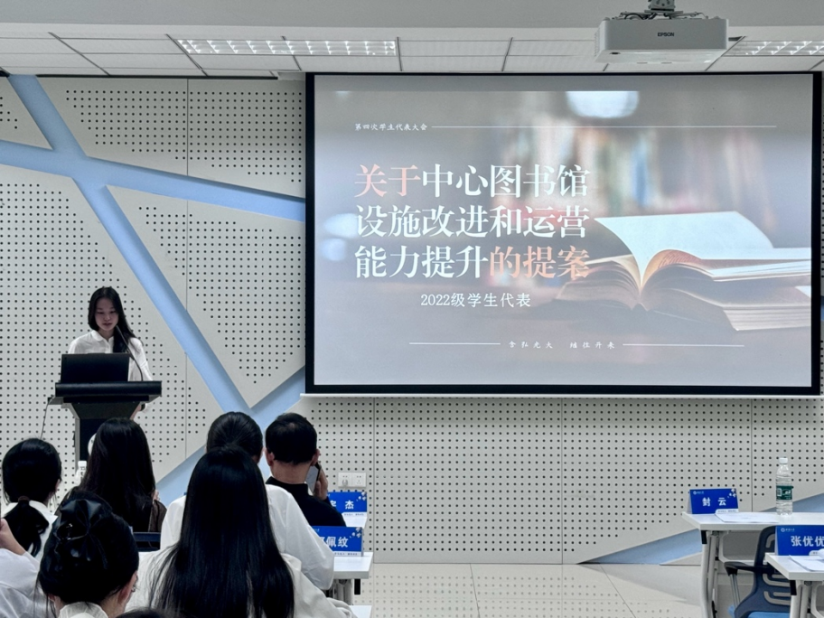 在第二次全体会议中,员工代表廖梓妤、张优优和游胜兰分别就非机动车道、中心图书馆设施与运营能力和校道照明状况提交提案,向大会说明提案的具体情况。