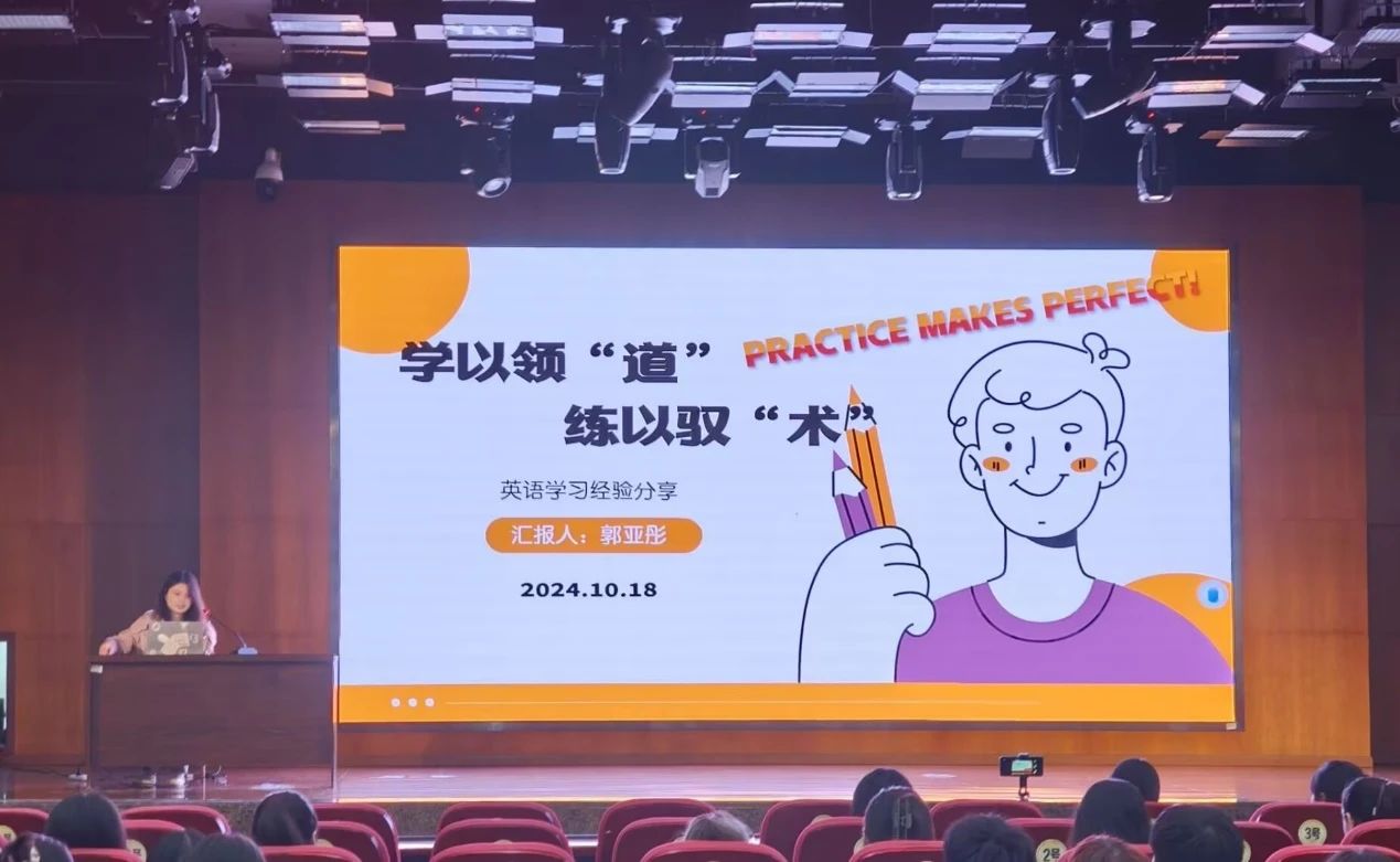 “学以领‘道’,练以驭‘术’”,郭亚彤分别从何以为“道”以及何以为“术”两个部分,说明了厚积薄发是英语学习中的不二法门;同时,她也分享了情景式记忆等诸多“学习秘籍”,帮助同学们更高效地记忆英语单词。
