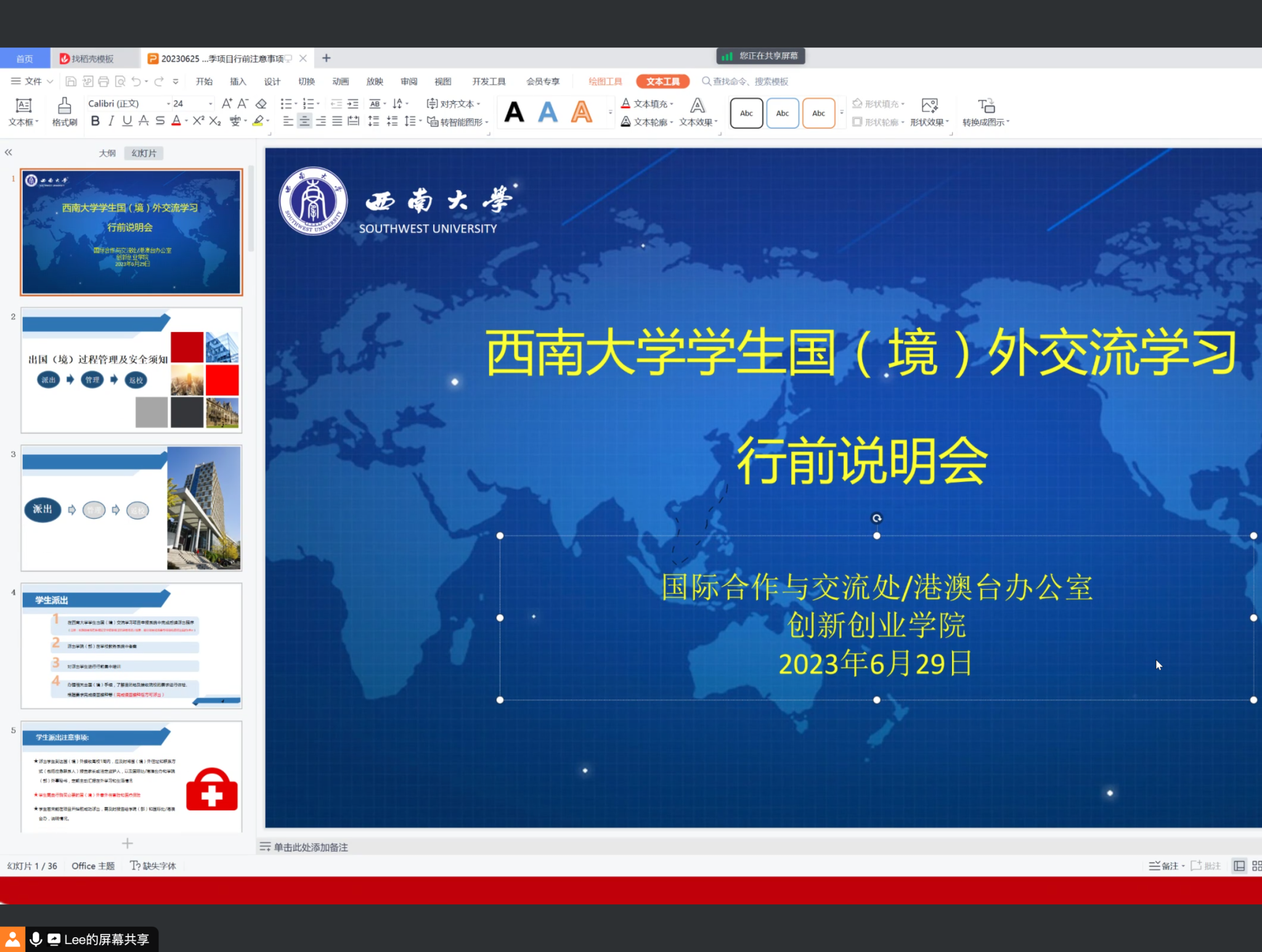 国际合作与交流处、公司召开创新创业海外训练营2023年暑期牛津项目行前培训会
