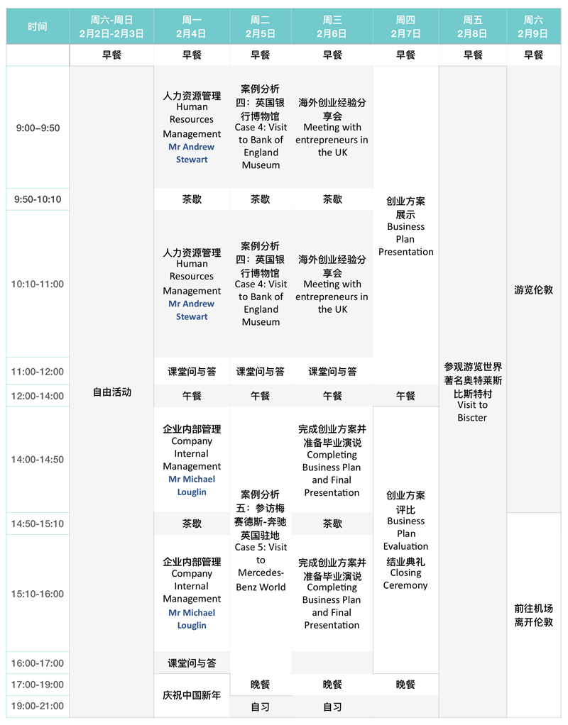 · 实地考察案例分析:吉百利工厂,捷豹路虎研发中心及工厂,丘吉尔庄园,英格兰银行,梅赛德斯奔驰英国驻地;
