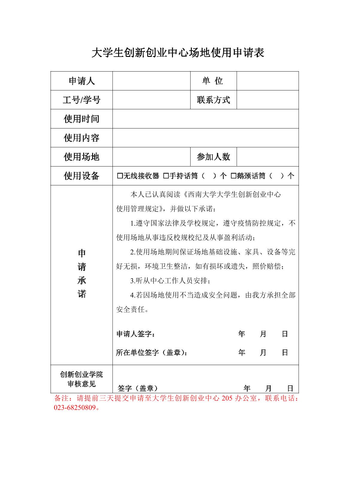 老员工创新创业中心场地使用申请表2022年4月.docx
